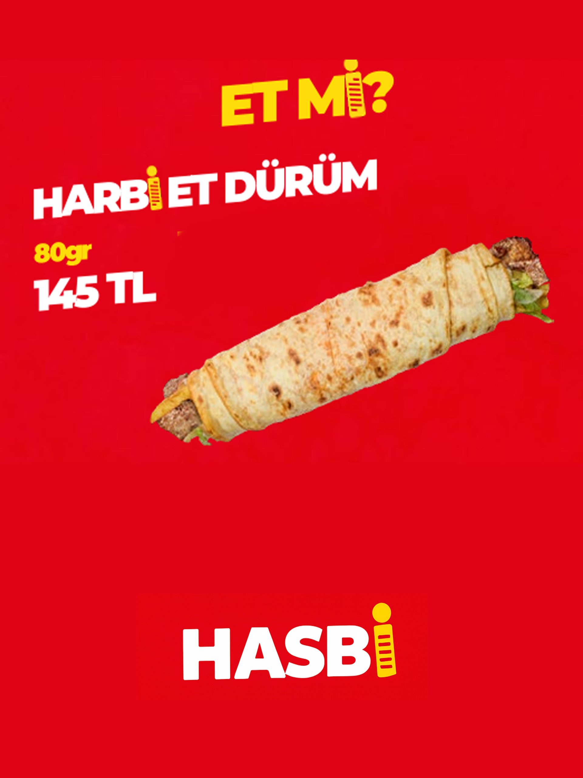 Hasbi Döner’in “sossuz döner” felsefesiyle hazırladığı Harbi Et Döner 80 gr, özenle seçilmiş dana etinin saf lezzetini tam kıvamında sunar. Her lokmada etin doğal aromasını, tereyağının sıcak dokusunu ve ustalıkla çevrilen dönerin o benzersiz tadını hissedersin.