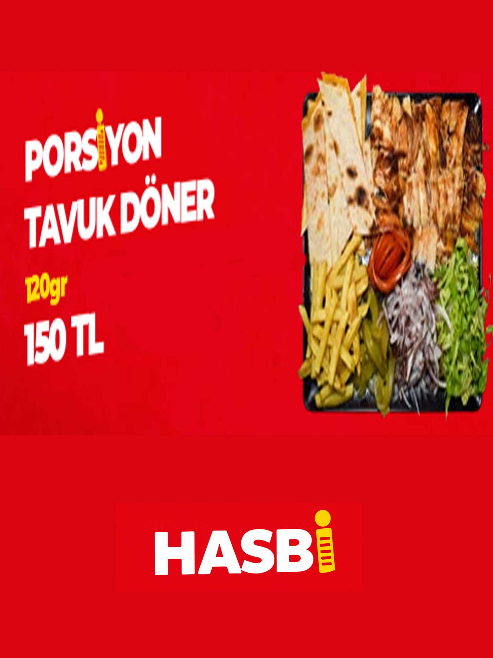 Hasbi Döner’in ustalığıyla hazırlanan Porsiyon Tavuk Döner 120 gr, tavuğun en doğal, en sade ve en lezzetli hâlini sofranıza getirir.